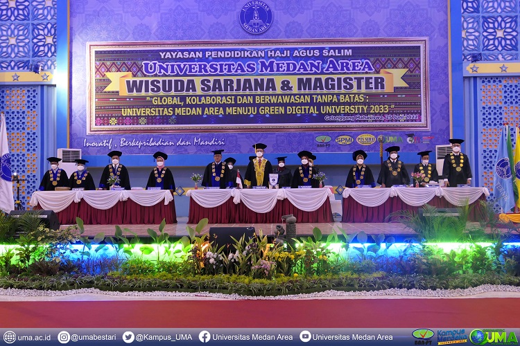 Universitas Medan Area menggelar wisuda acara sarjana serta magister periode I tahun 2022, diikuti 675 wisudawan serta wisudawati berlangsung tatap muka di sasana Mahasiswa Kampus UMA pada Jalan Kolam, Medan Estate, Sabtu (25/6/2022).